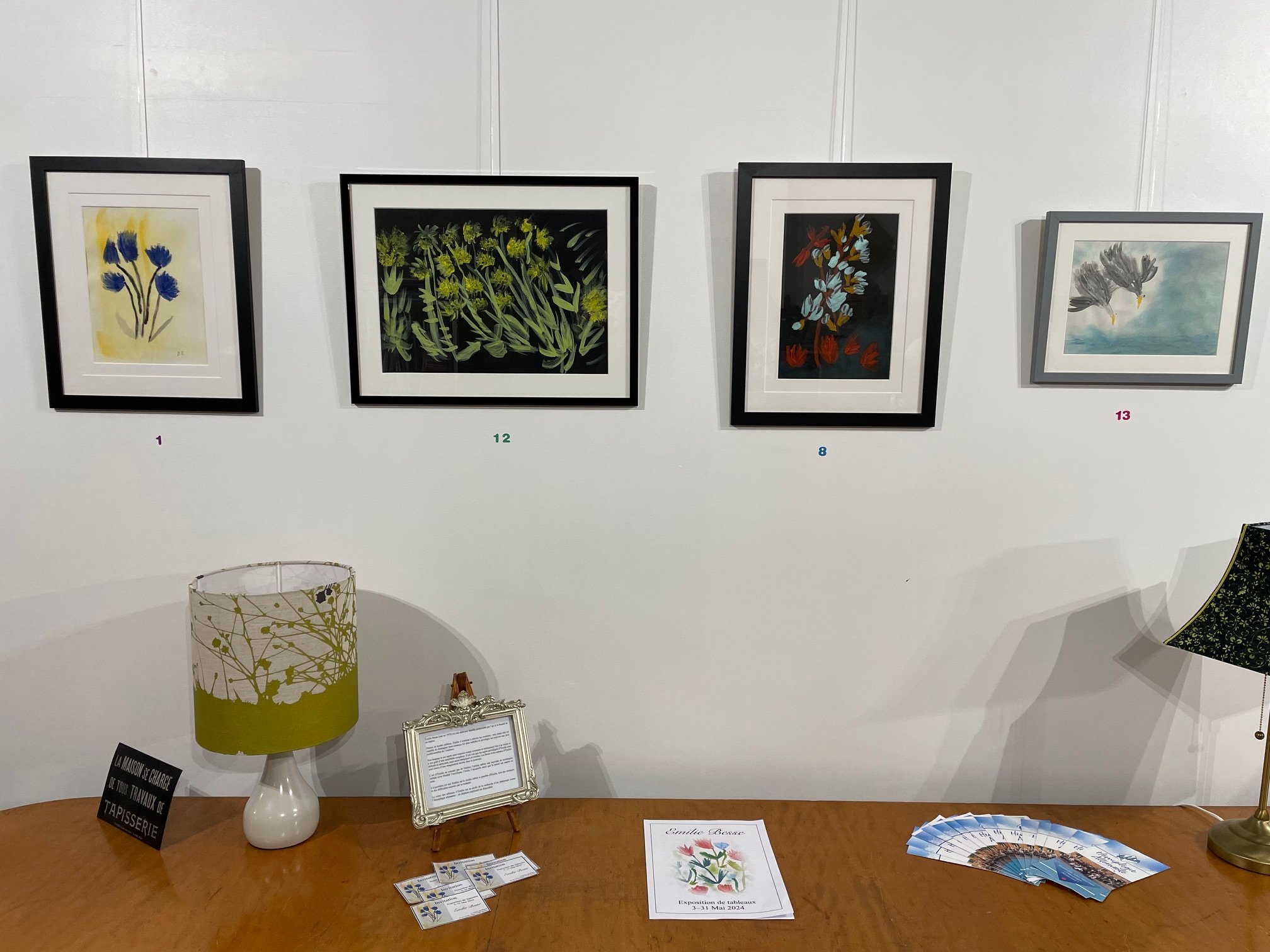 Son exposition s’est tenue du 03 au 31 mai 2024 au magasin « La dame qui pique » d’un artisan tapissier qui offre gracieusement une partie de son local pour permettre des expositions de peinture.