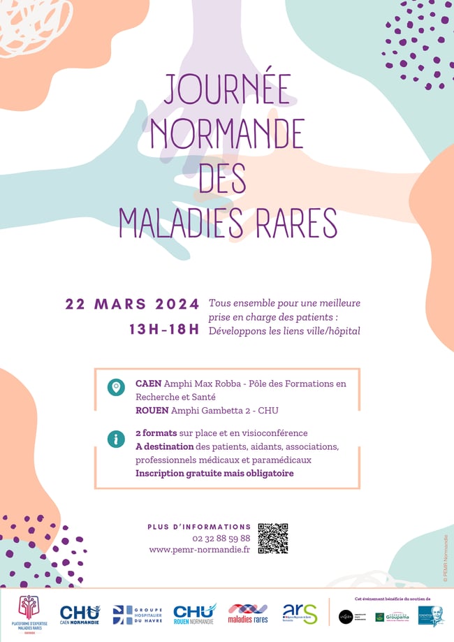 La Plateforme d’Expertise Maladies Rares Normandie, le service génétique du CHU de Caen et de Rouen, et l’Alliance Maladies Rares Normandie, organisent dans le cadre de la  Journée Internationale Maladies Rares 2024 (prévue le jeudi 29 février 2024) :