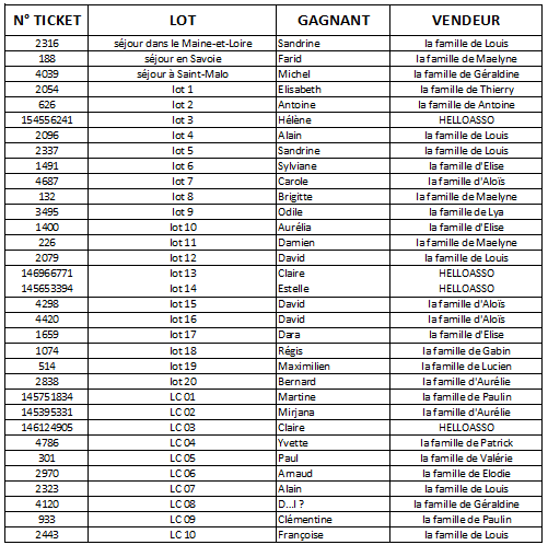 Le tirage au sort aura lieu lors de notre assemblée générale le Samedi 29 Novembre 2025 aux hospices civils de Lyon (69) et sera effectué par les enfants de notre association.