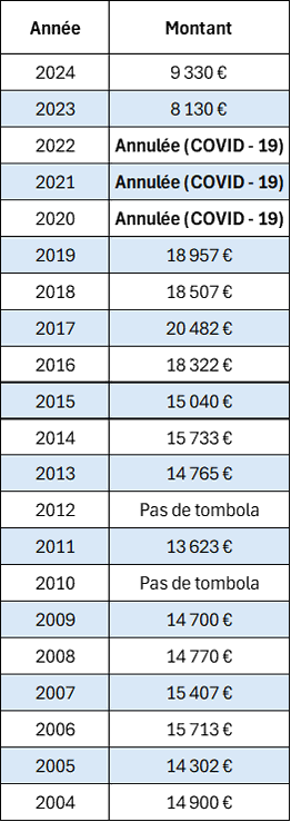 Le tirage au sort aura lieu lors de notre assemblée générale le Samedi 29 Novembre 2025 aux hospices civils de Lyon (69) et sera effectué par les enfants de notre association.